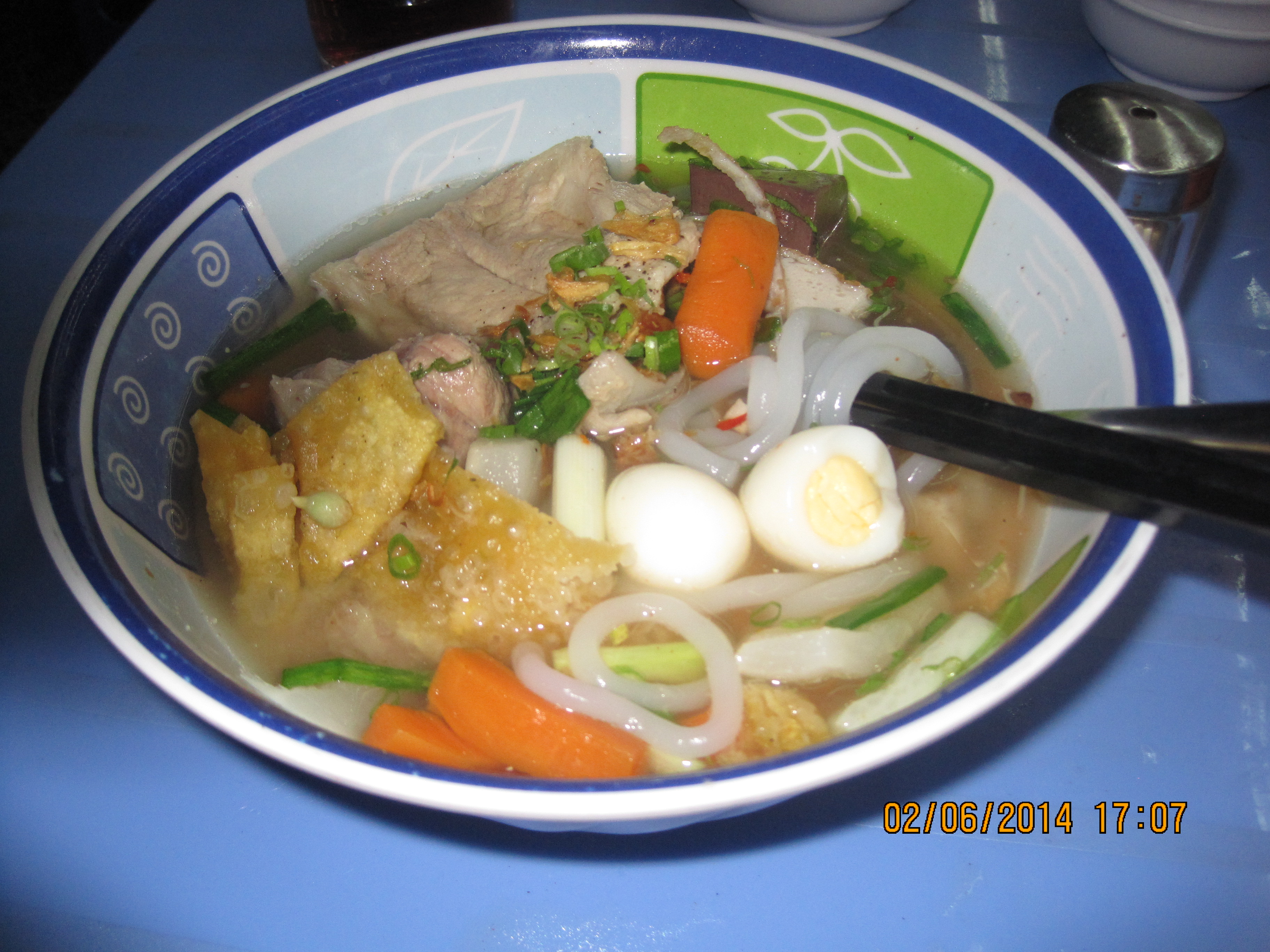 Var ute i nabolaget og tok meg et par øl, har altså prøvd ølet «333» og en Heineken. Spiste på gatekjøkken en suppe, tror det kalles pho. Det var veldig godt! Inneholdt risnudler, koktsvinekjøtt, små egg som jeg vet ikke hva slags fugl det kommer fra, grønnsaker og chilli.