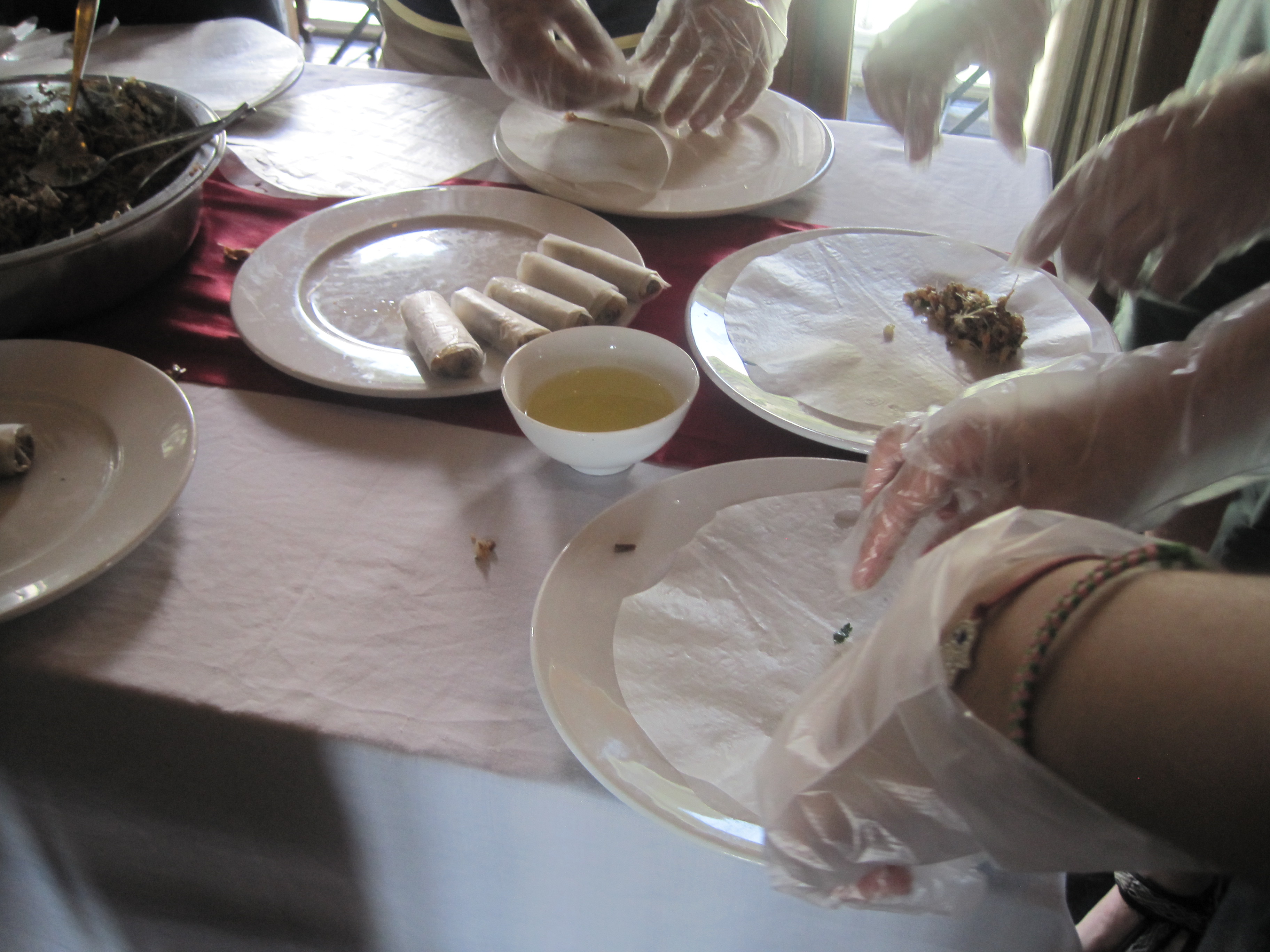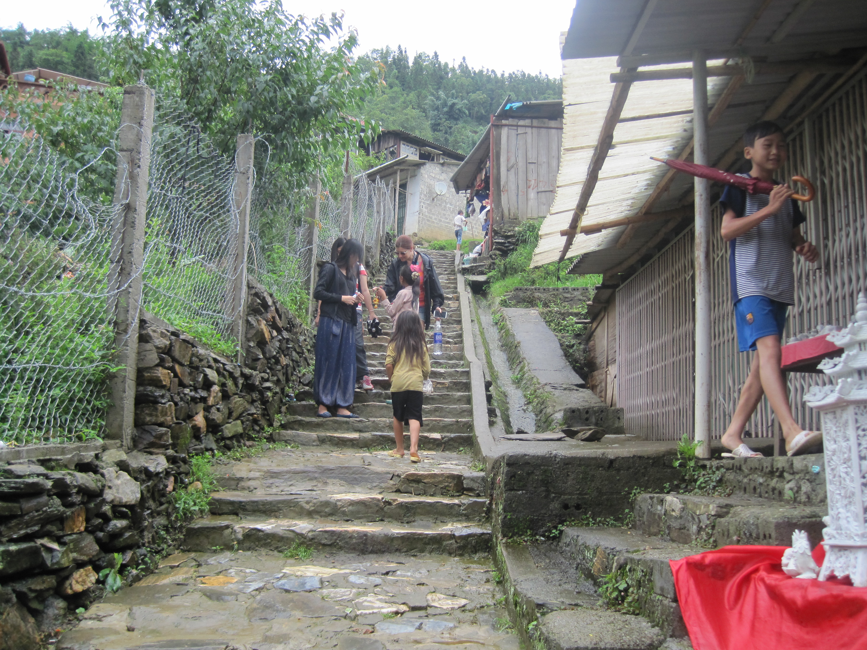 Da gruppen kom, spiste vi en varm lunsj. Deretter bar det avgårde i cirka 3 km på landsbyveier og stier før vi kom fram til vår ventende minibuss. Forstod på de andre at det var en svært så gjørmete tur. Skoene deres var innsmurt med gulbrun gjørme. Glad jeg stod over!